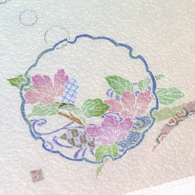 友禅の特徴であるぼかしや糸目、色使いなどをお楽しみください。